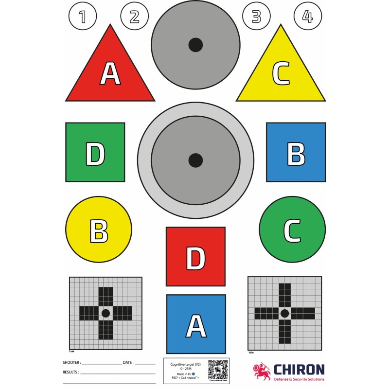 Cette cible a été développée par les instructeurs de la société Chiron pour les besoins de leurs formations. Reprenant un archétype largement éprouvé aux États-Unis, cette cible est adaptée au besoin des professionnels armés dans le cadre d'exercices faisant appel à la mémoire, la concentration ainsi qu'à la capacité d'adaptation du tireur.