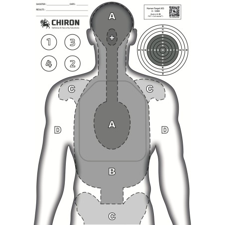 De type silhouette, elle permet une visualisation simplifiée des lésion à court terme d’une blessure par balle.