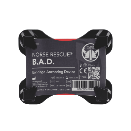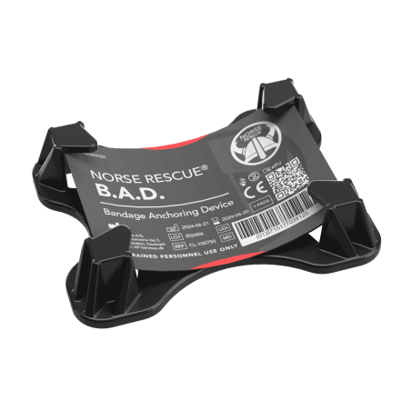 Le NORSE RESCUE® B.A.D. (Bandage Anchoring Device)* est un outil complémentaire conçu pour améliorer la stabilisation des pansements compressifs, garantissant l'application d'une pression sécurisée et constante dans les zones difficiles à traiter. Réalisé en polypropylène robuste avec quatre points d’ancrage, il offre plusieurs options de fixation lorsque le bandage traditionnel ne suffit pas. Idéal lors du transport ou de l’évacuation d’un patient, le B.A.D. empêche les bandages de bouger, apportant un soutien crucial dans des situations dynamiques. Conçu pour les professionnels formés, il permet une gestion efficace des soins en mouvement, réduisant le risque de déplacement du bandage. Le B.A.D. est à usage unique, non stérile, et ne doit pas être placé directement sur une plaie. Il n’est pas adapté à une utilisation sur la poitrine, le cou ou l’abdomen.