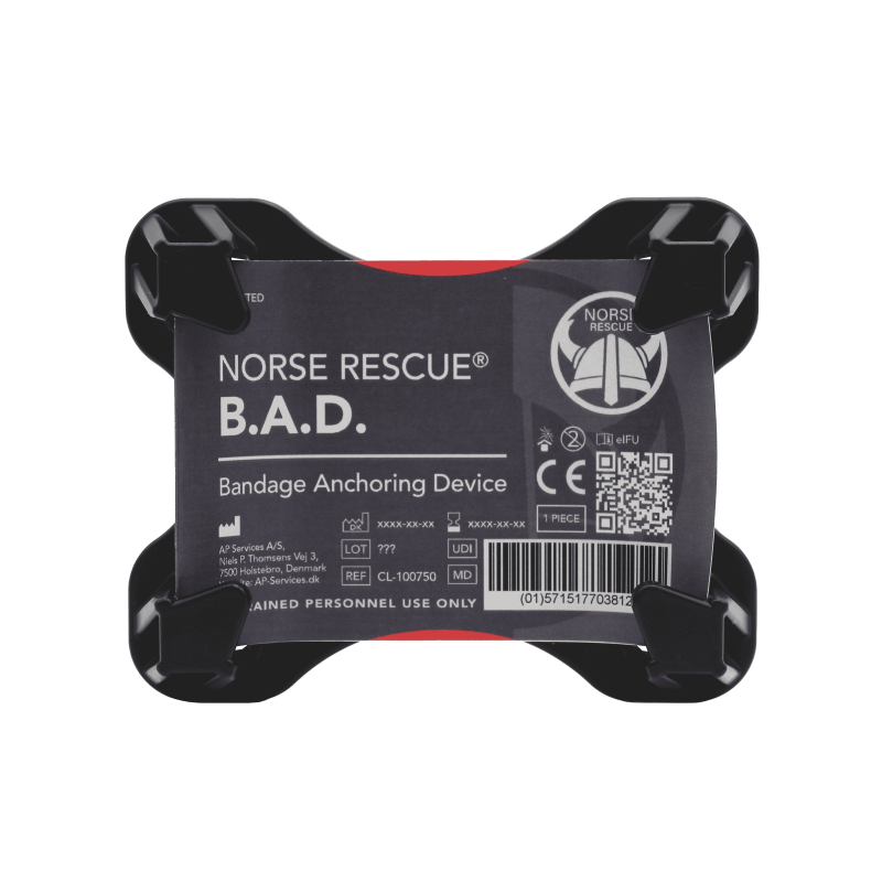 Le NORSE RESCUE® B.A.D. (Bandage Anchoring Device) est un outil complémentaire conçu pour améliorer la stabilisation des pansements compressifs, il empêche les bandages de bouger, apportant un soutien crucial dans des situations dynamiques.