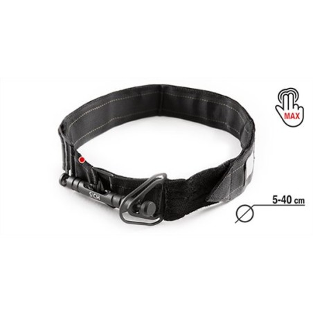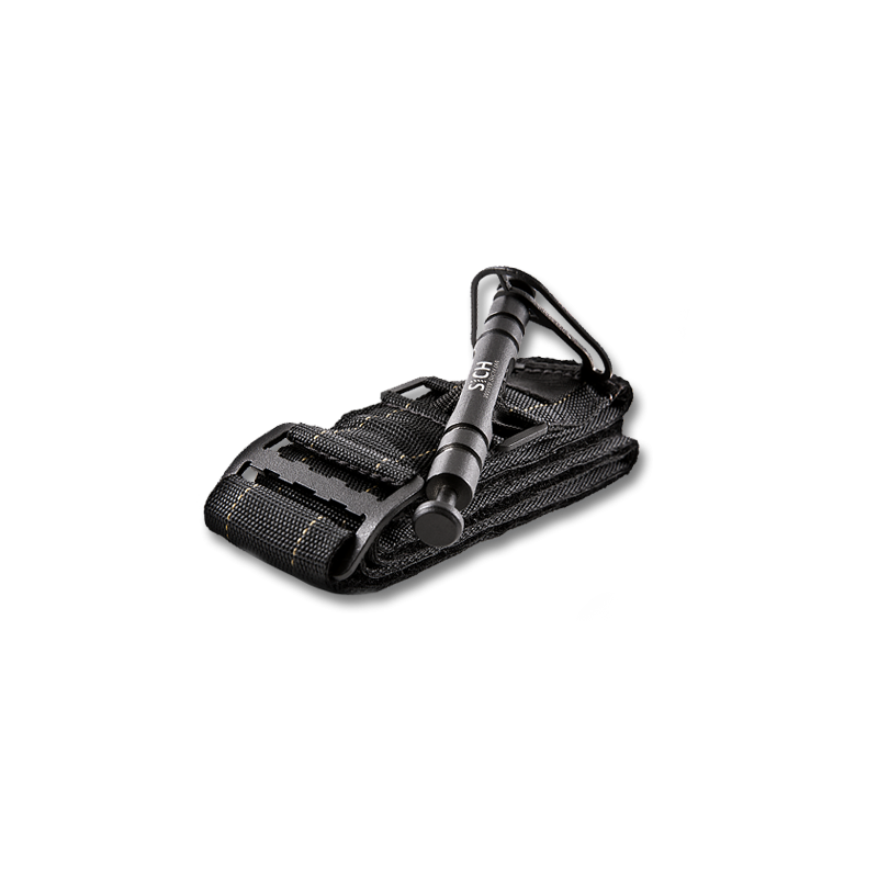 Notre forme de triangle unique permet de fixer rapidement et solidement le bâton de serrage et l’extrémité de la corde, même sous stress intense.
